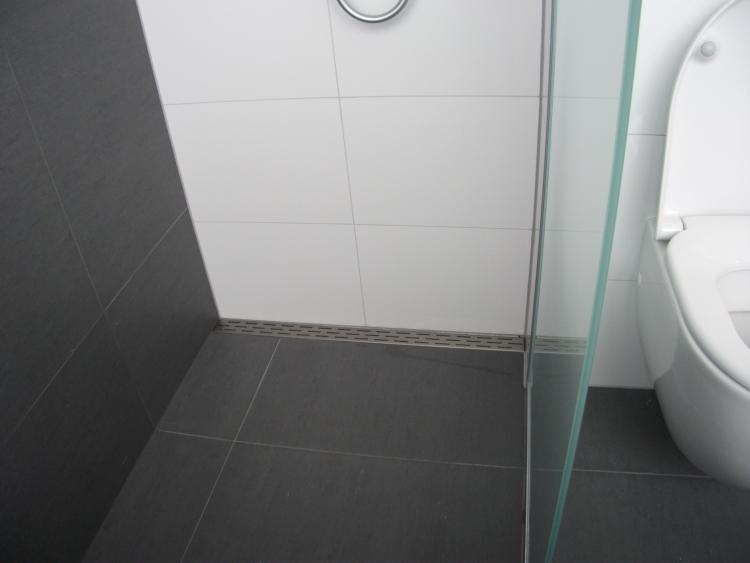 De grijze en witte tegels zorgen voor een strakke uitstraling.